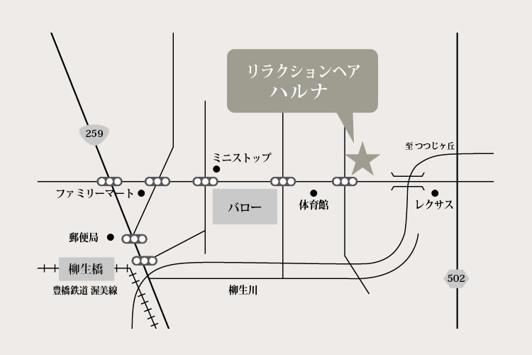 電車でお越しの場合 ー 豊橋鉄道渥美線柳生橋駅より徒歩15分